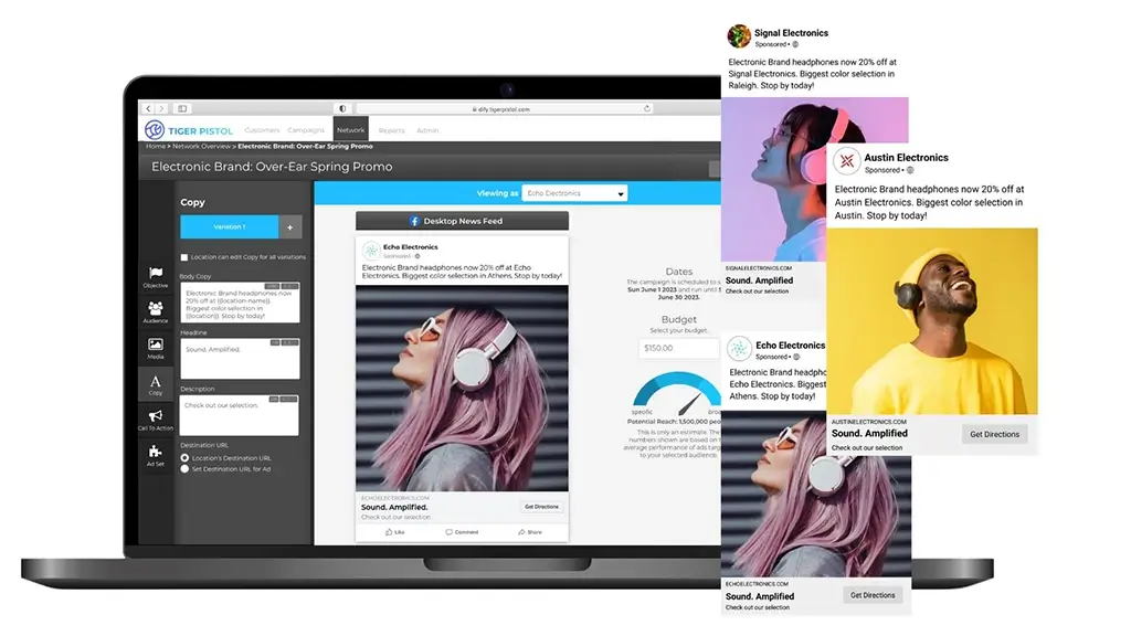 By launching ads directly from franchisee or local business accounts, Tiger Pistol makes every campaign appear as if it’s coming from the neighborhood itself. AI-powered personalization adapts calls-to-action and creative elements so ads connect authentically with the local community while staying fully on-brand.